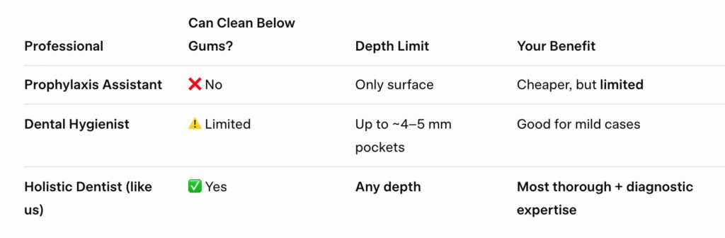 We often see patients who had “cheap” cleanings in other countries.At first glance, it looked fine — but under the gums? Missed. Result:- Hidden tartar → gum inflammation → early periodontal disease. Avoidable damage that now needs expensive treatment.